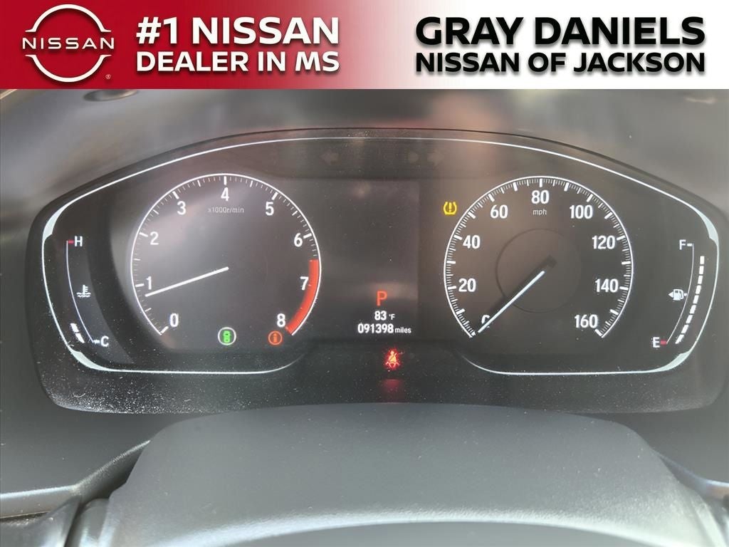 Black Cloth, 4-Wheel Disc Brakes, 8 Speakers, ABS brakes, Adaptive Cruise Control: Adaptive Cruise Control (ACC) with Low-Speed Follow, Air Conditioning, Alloy wheels, AM/FM radio, Apple CarPlay/Android Auto, Auto High-beam Headlights, Automatic temperature control, Brake assist, Bumpers: body-color, Cloth Seat Trim, Delay-off headlights, Driver door bin, Driver vanity mirror, Dual front impact airbags, Dual front side impact airbags, Electronic Stability Control, Emergency communication system: HondaLink, Exterior Parking Camera Rear, Forward collision: Collision Mitigation Braking System (CMBS) + FCW mitigation, Four wheel independent suspension, Front anti-roll bar, Front Bucket Seats, Front Center Armrest, Front dual zone A/C, Front fog lights, Front reading lights, Fully automatic headlights, Illuminated entry, Knee airbag, Lane Departure Warning System, Leather Shift Knob, Leather steering wheel, Low tire pressure warning, Occupant sensing airbag, Outside temperature display, Overhead airbag, Overhead console, Panic alarm, Passenger door bin, Passenger vanity mirror, Power door mirrors, Power driver seat, Power steering, Power windows, Radio data system, Radio: 180-Watt AM/FM Audio System, Rear anti-roll bar, Rear seat center armrest, Rear window defroster, Remote keyless entry, Security system, Speed control, Speed-sensing steering, Speed-Sensitive Wipers, Split folding rear seat, Spoiler, Steering wheel mounted audio controls, Tachometer, Telescoping steering wheel, Tilt steering wheel, Traction control, Trip computer, Variably intermittent wipers, Wheels: 19 Machine-Finished Alloy w/Black Inserts.