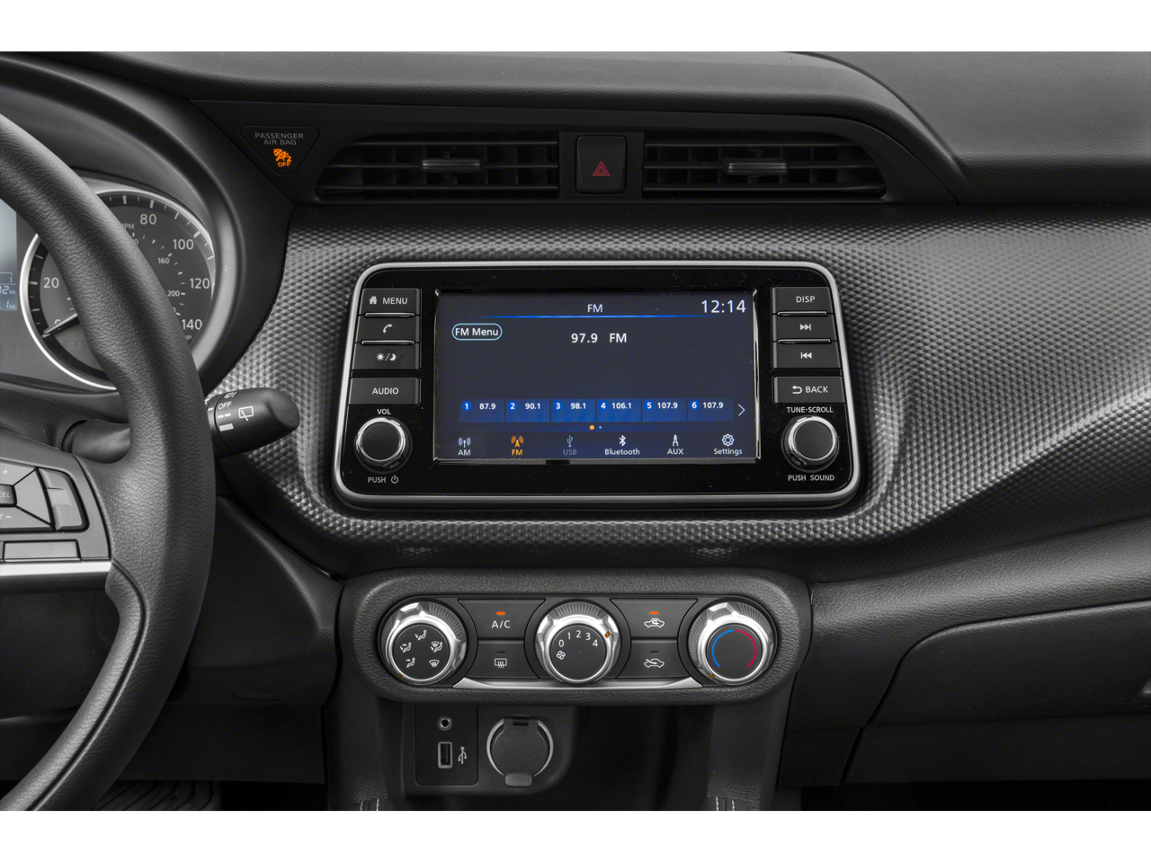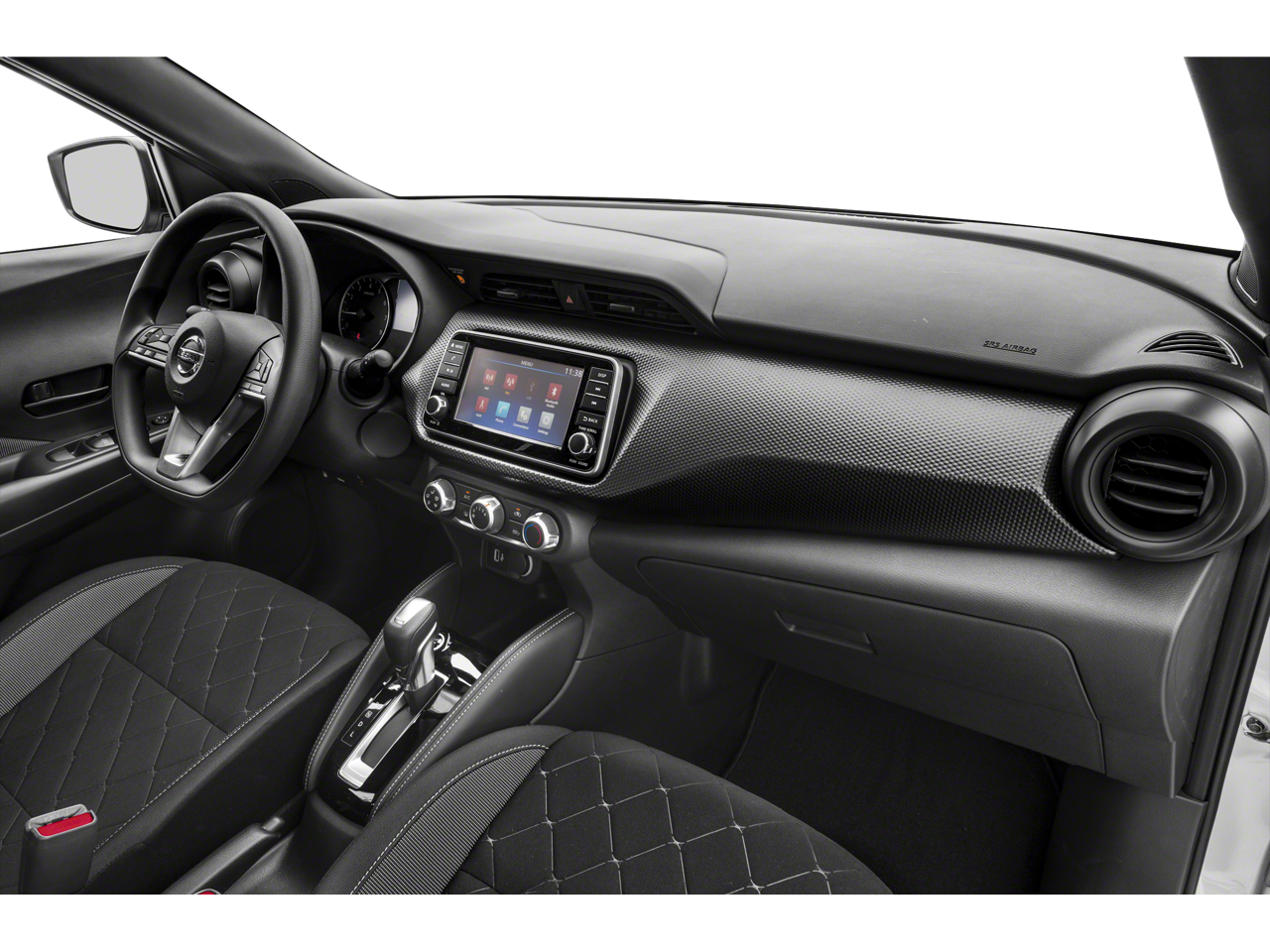 Step inside the Kicks SV and you'll be greeted by a well-appointed cabin that prioritizes both style and functionality. Cloth Seat Trim, a Sport steering wheel, and a range of advanced technology features, including NissanConnect with Apple CarPlay and Android Auto, ensure your every journey is comfortable and connected.