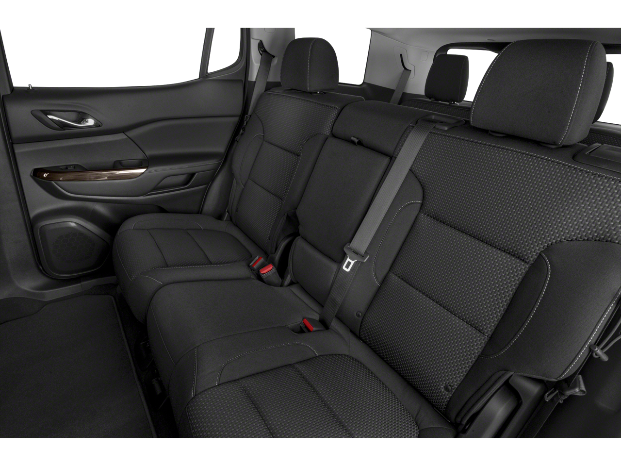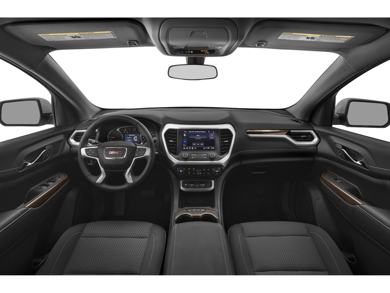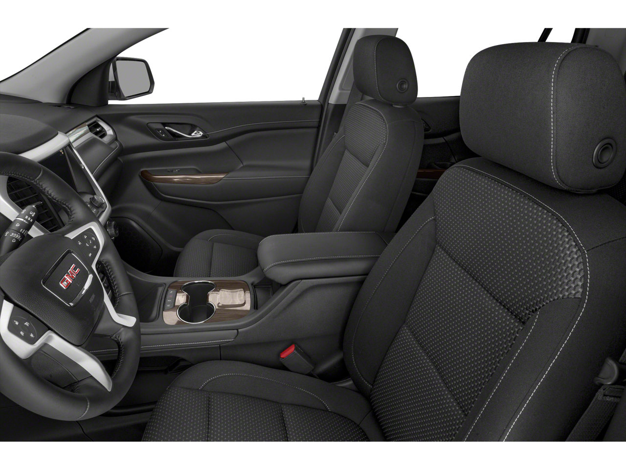 FWD, Jet Black Cloth, 120-Volt Power Outlet, 20 Machined Aluminum Wheels, 3.47 Final Drive Axle Ratio, 3rd row seats: split-bench, 4-Way Manual Driver Seat Adjuster, 4-Way Manual Passenger Seat Adjuster, 4-Wheel Disc Brakes, 6 Speakers, 6-Passenger (2-2-2 Seating Configuration), 6-Speaker Audio System Feature, 7-Passenger (2-3-2 Seating Configuration), 8-Way Power Driver Seat Adjuster, ABS brakes, Air Conditioning, Alloy wheels, AM/FM radio: SiriusXM, Apple CarPlay/Android Auto, Auto High-beam Headlights, Automatic temperature control, Brake assist, Brushed Aluminum Roof Rails, Bumpers: body-color, Compass, Delay-off headlights, Driver Convenience Package, Driver door bin, Driver vanity mirror, Dual front impact airbags, Dual front side impact airbags, Electronic Stability Control, Elevation Edition, Emergency communication system: OnStar and GMC Connected Services capable, Four wheel independent suspension, Front anti-roll bar, Front Bucket Seats, Front Center Armrest, Front dual zone A/C, Front reading lights, Fully automatic headlights, Gloss Black Roof Rails, Hands Free Power Programmable Liftgate, Heated door mirrors, Heated Driver & Front Passenger Seats, Illuminated entry, Knee airbag, Low tire pressure warning, Not Equipped w/Driver & Fr Passenger Heated Seats, Not Equipped w/Front & Rear Park Assist, Occupant sensing airbag, Outside temperature display, Overhead airbag, Overhead console, Panic alarm, Passenger door bin, Passenger vanity mirror, Power door mirrors, Power Driver Lumbar Control Seat Adjuster, Power steering, Power windows, Preferred Equipment Group 3SA, Premium audio system: GMC Infotainment System, Premium Cloth Seat Trim, Radio data system, Radio: AM/FM w/8 Diagonal Multi-Touch Display, Rear air conditioning, Rear anti-roll bar, Rear reading lights, Rear window defroster, Rear window wiper, Remote keyless entry, Remote Start, Security system, SiriusXM Radio, Speed control, Speed-sensing steering, Spoiler, Steering wheel mounted audio controls, Tachometer, Telescoping steering wheel, Tilt steering wheel, Traction control, Trip computer, Turn signal indicator mirrors, Variably intermittent wipers, Voltmeter, Wireless Apple CarPlay/Wireless Android Auto.