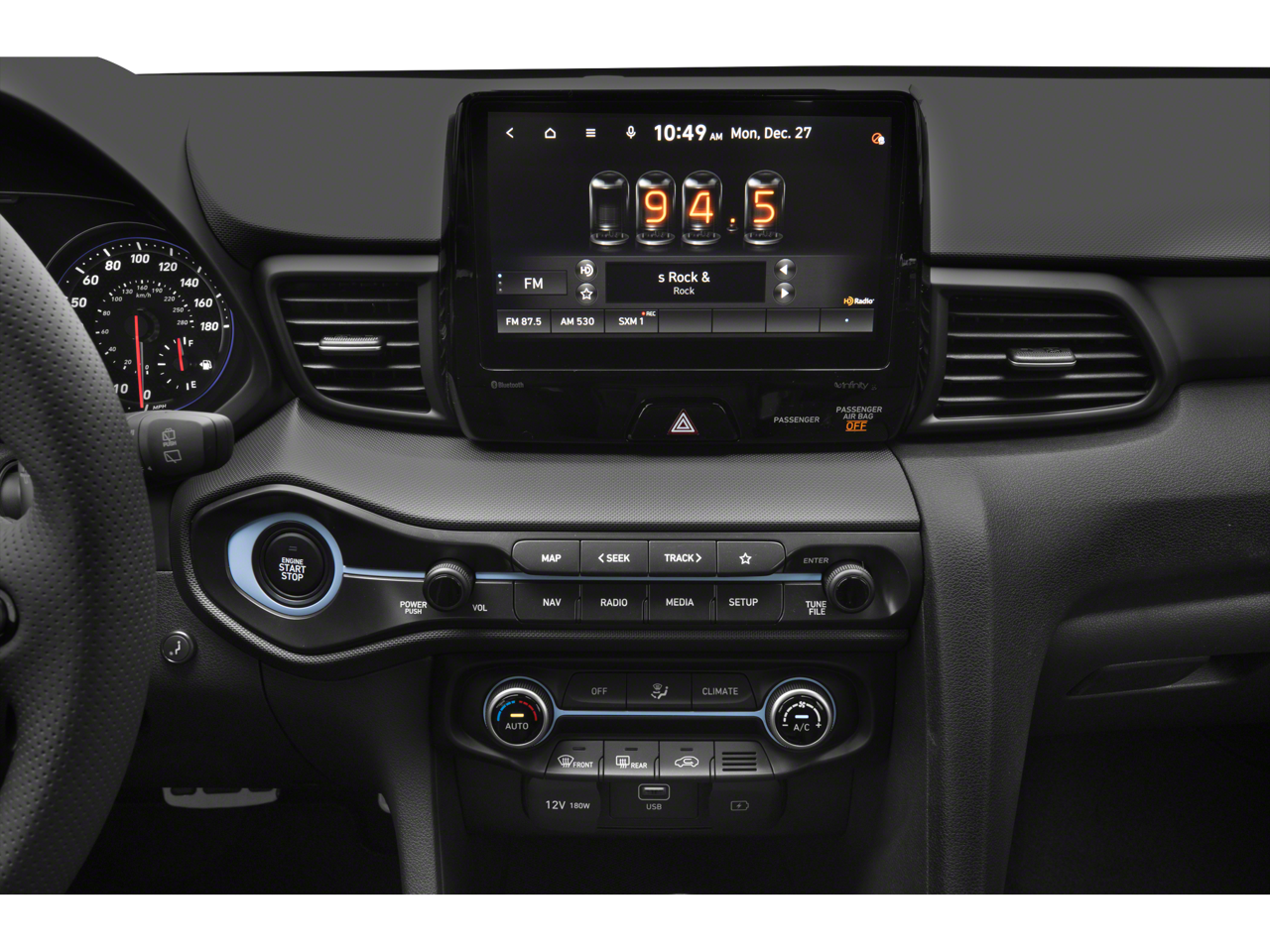 The interior of the Veloster N is designed with the driver in mind, featuring a sport-inspired cockpit with supportive bucket seats, a leather-wrapped steering wheel, and intuitive controls. The premium audio system with SiriusXM and the seamless integration of your smartphone via Apple CarPlay and Android Auto ensure you stay connected and entertained on the road.