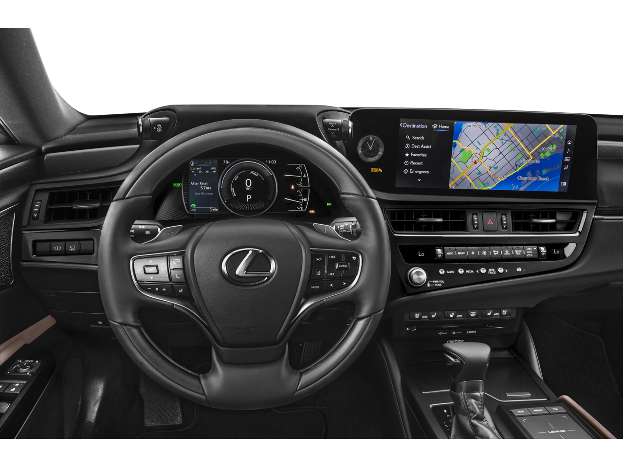 The Lexus ES 300h Ultra Luxury goes above and beyond with its exceptional features. Experience the convenience of the 12.3-inch color multimedia touch-screen display, dynamic voice command, and the renowned Mark Levinson audio system with 17 speakers and 1,800-watt PurePlay premium surround sound. The 10.2-inch Head-Up Display and Intuitive Parking Assist with Panoramic View Monitor provide unparalleled confidence and control behind the wheel.