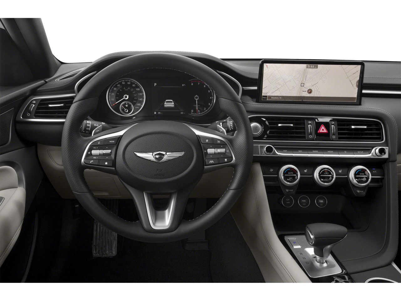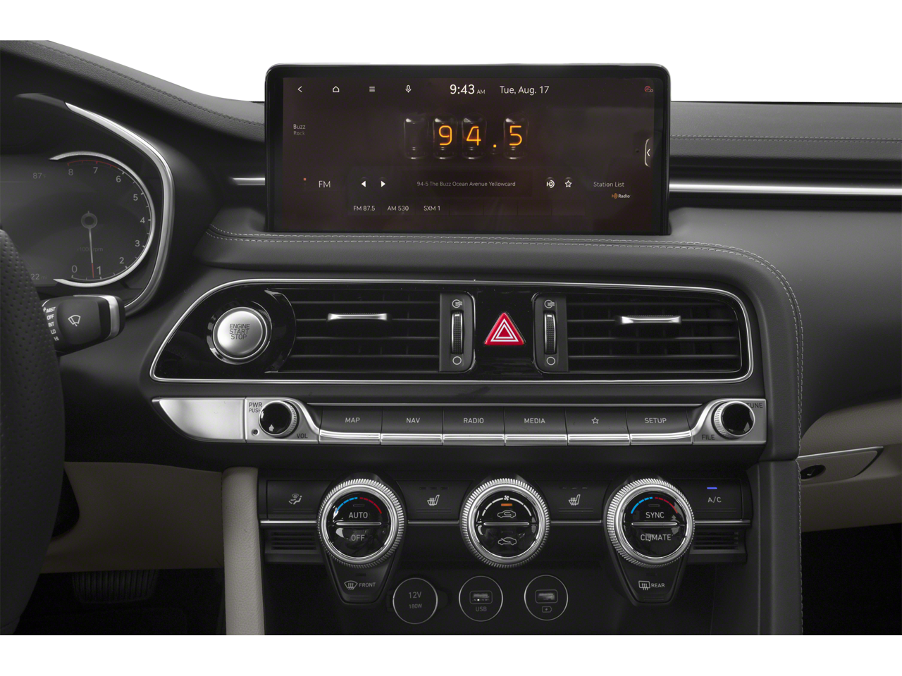 One Owner Trade, 4-Wheel Disc Brakes, 6 Speakers, ABS brakes, Air Conditioning, Alloy wheels, AM/FM radio: SiriusXM, Android Auto & Apple CarPlay, Anti-whiplash front head restraints, Auto High-beam Headlights, Auto-dimming Rear-View mirror, Automatic temperature control, Brake assist, Bumper Applique, Bumpers: body-color, Delay-off headlights, Driver door bin, Driver vanity mirror, Dual front impact airbags, Dual front side impact airbags, Electronic Stability Control, Emergency communication system: Genesis Connected Services, Exterior Parking Camera Rear, Four wheel independent suspension, Front anti-roll bar, Front Bucket Seats, Front Center Armrest, Front dual zone A/C, Front reading lights, Fully automatic headlights, Garage door transmitter: HomeLink, Heated door mirrors, Heated front seats, Heated Multi-Adjustable Front Bucket Seats, Illuminated entry, Knee airbag, Leatherette Seating Surfaces, Low tire pressure warning, Mudguards, Navigation System, Occupant sensing airbag, Option Group 01, Outside temperature display, Overhead airbag, Overhead console, Panic alarm, Passenger door bin, Passenger vanity mirror, Power door mirrors, Power driver seat, Power passenger seat, Power steering, Power windows, Premium First Aid Kit, Radio: AM/FM/SiriusXM/HD Audio System, Rear anti-roll bar, Rear reading lights, Rear seat center armrest, Rear window defroster, Remote keyless entry, Security system, Speed control, Speed-Sensitive Wipers, Split folding rear seat, Steering wheel mounted audio controls, Tachometer, Telescoping steering wheel, Traction control, Trip computer, Turn signal indicator mirrors, Variably intermittent wipers, Wheel Locks, Wheels: 19 x 8.0J Fr & 19 x 8.5J Rr Alloy.