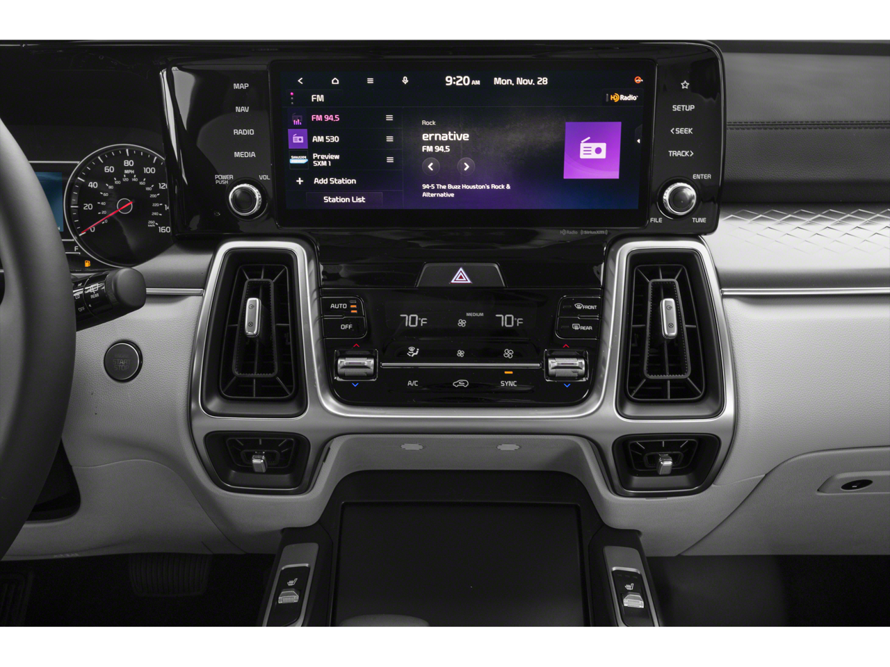 Step inside the Sorento S and be captivated by the thoughtfully designed interior. Sink into the Heated Front Bucket Seats, wrapped in SynTex Artificial Leather Seat Trim, and enjoy the comfort of the Front Center Armrest. Stay connected with the cutting-edge Apple CarPlay and Android Auto integration, and navigate with ease using the built-in Navigation System.