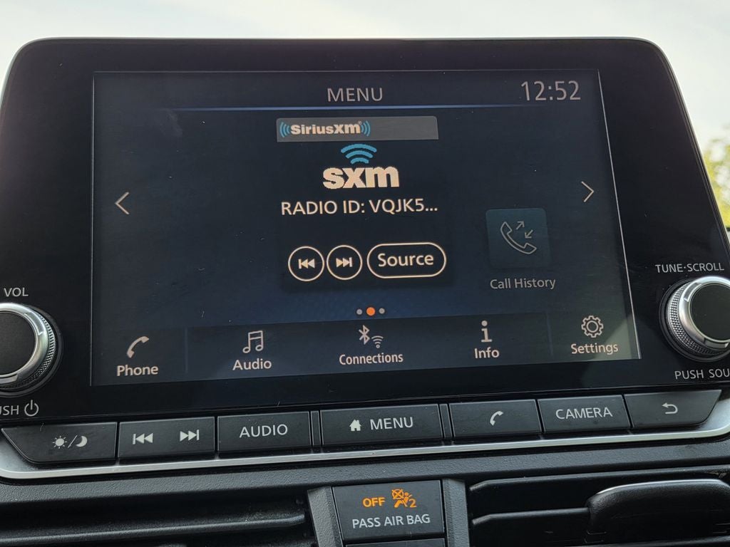 SV Package, CVT with Xtronic, 17 Machined Alloy Wheels, 4-Wheel Disc Brakes, 6 Speakers, ABS brakes, Air Conditioning, Alloy wheels, AM/FM radio: SiriusXM, Auto High-beam Headlights, Blind Spot Warning, Brake assist, Bumpers: body-color, Cloth Seat Trim, Delay-off headlights, Driver door bin, Driver vanity mirror, Dual front impact airbags, Dual front side impact airbags, Electronic Stability Control, Floor Mats/Trunk Mat/Hideaway Net, Four wheel independent suspension, Front anti-roll bar, Front Bucket Seats, Front Center Armrest, Front reading lights, Fully automatic headlights, Illuminated entry, Knee airbag, Low tire pressure warning, NissanConnect featuring Apple CarPlay and Android Auto, Occupant sensing airbag, Outside temperature display, Overhead airbag, Overhead console, Panic alarm, Passenger door bin, Passenger vanity mirror, Power door mirrors, Power driver seat, Power steering, Power windows, Radio data system, Radio: AM/FM Audio System, Rear anti-roll bar, Rear Parking Sensors, Rear reading lights, Rear seat center armrest, Rear side impact airbag, Rear window defroster, Remote keyless entry, Security system, Speed control, Speed-sensing steering, Speed-Sensitive Wipers, Split folding rear seat, Steering wheel mounted audio controls, Tachometer, Telescoping steering wheel, Tilt steering wheel, Traction control, Trip computer, Variably intermittent wipers.