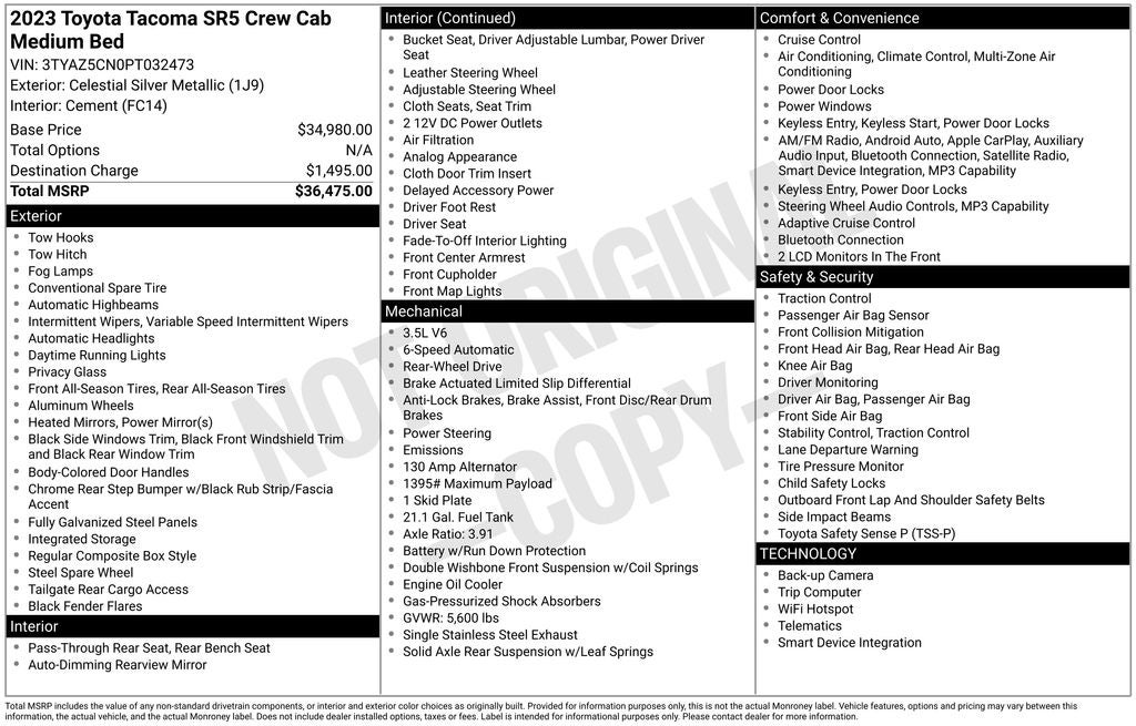 VIN: 3TYAZ5CN0PT032473