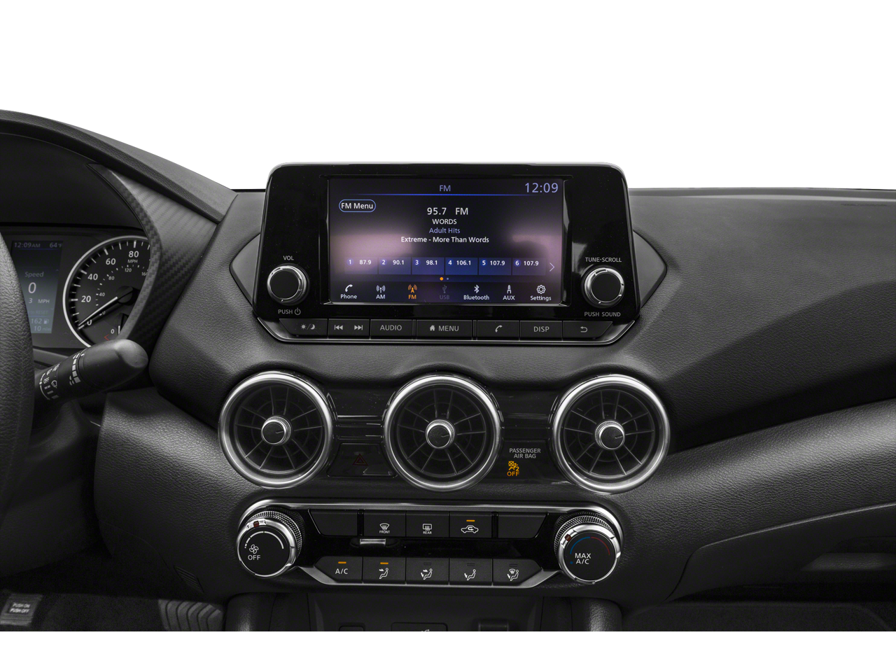 Step inside the well-appointed cabin and discover the thoughtful amenities that make every journey more enjoyable. Sink into the comfortable cloth seats, take advantage of the intuitive NissanConnect system with Apple CarPlay and Android Auto integration, and stay connected with the steering wheel-mounted audio controls.